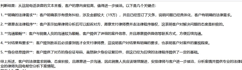 精準捕捉客戶對話中的關鍵詞與情緒傾向,識別潛在需求與隱性顧慮,為后續溝通策略提供數據支持。