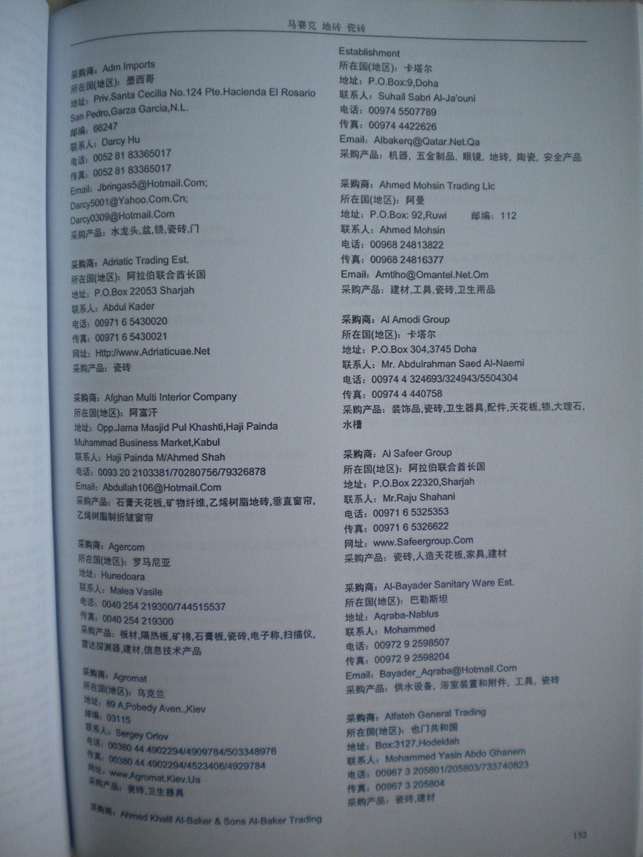 書刊簡介:《全球采商黃頁》系列叢書是由全球最活躍的專業買家及重要國際性展會的到會采購商名片信息匯編而成,包含三十多個行業分類,匯集了各類產品的買家信息。其中收錄的每家采購商信息均是我們通過與買家面對面的登記整理收集而成,采購意向明確,針對性強。為了確保信息的準確性和時效性,我們定期進行跟進、回訪、補充及更新工作。每家采購商信息包括國別、公司名稱、聯系人、地址、電話、傳真、電郵、網址、采購產品等詳細內容,每冊《黃頁》約有兩千家左右的采購商信息。在當前國際出口形勢日趨嚴峻的環境下,如何降低成本開拓國際市場,是每個出口企業急需尋找的答案,我們相信通過我們10多年的外貿信息服務經驗和最新的國際買家資源服務,將會為您拓展全球市場提供最直接有效的幫助。專業對口的買家信息一定會幫助貴公司打開更廣闊的外貿市場!