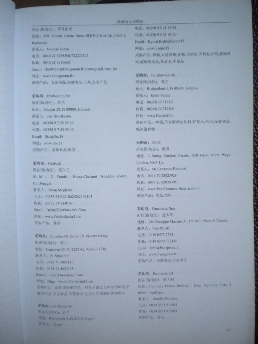 資料如何收集:在各大展會上,我們免費向到會采購商提供他們需要的最新產品雜志和光盤,我們也同時向他們派發帶有我們網站LOGO的精美禮品,這些最新的中國供應商的信息,對他們很有幫助,采購商會留下他們的名片,填寫詳細的產品求購信息,以期望得到更多的供應商的信息。收集到這些第一手的原始外商資料后,我們客戶服務中心立刻將名片掃描作成圖片,將產品采購信息做成數據庫,將采購商資料按行業不同,匯編成冊,出版發行《全球采購商黃頁》系列。