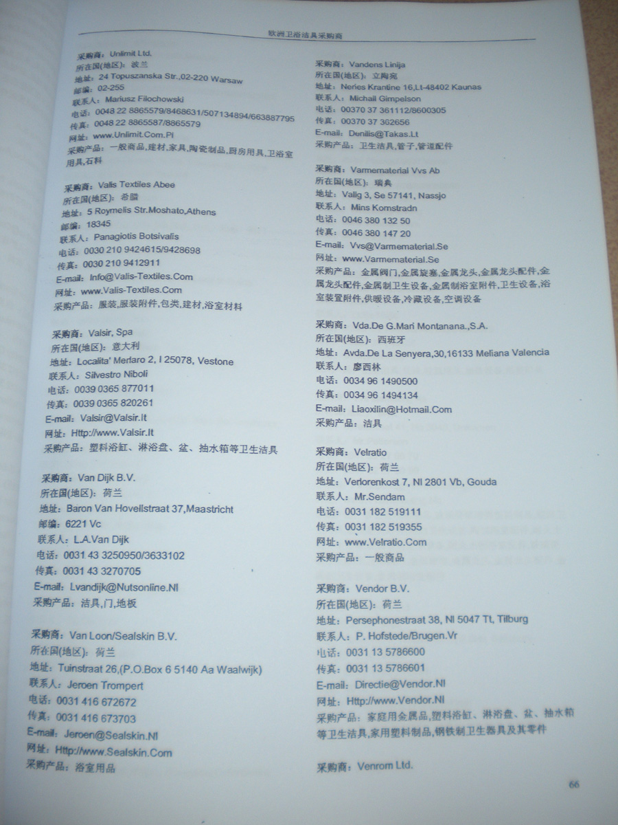 資料如何收集:在各大展會上,我們免費向到會采購商提供他們需要的最新產(chǎn)品雜志和光盤,我們也同時向他們派發(fā)帶有我們網(wǎng)站LOGO的精美禮品,這些最新的中國供應(yīng)商的信息,對他們很有幫助,采購商會留下他們的名片,填寫詳細(xì)的產(chǎn)品求購信息,以期望得到更多的供應(yīng)商的信息。收集到這些第一手的原始外商資料后,我們客戶服務(wù)中心立刻將名片掃描作成圖片,將產(chǎn)品采購信息做成數(shù)據(jù)庫,將采購商資料按行業(yè)不同,匯編成冊,出版發(fā)行《全球采購商黃頁》系列。