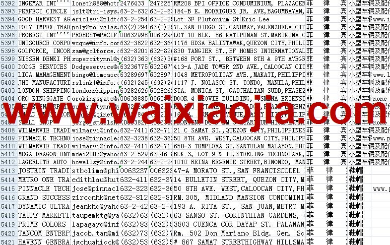 菲律賓采購商名單數據為Excel格式,信息可任意修改、復制、打印、導出及導入到傳真、郵件群發等軟件中,無任何限制。