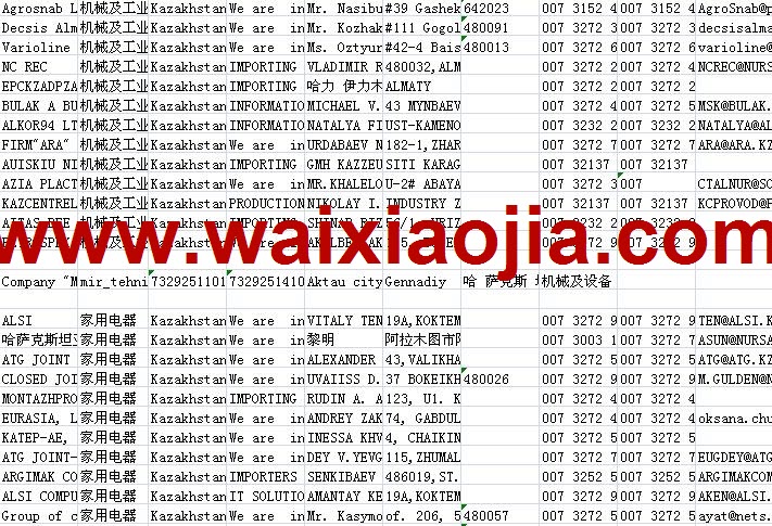 哈薩克斯坦采購商名單數據為Excel格式,信息可任意修改、復制、打印、導出及導入到傳真、郵件群發等軟件中,無任何限制。