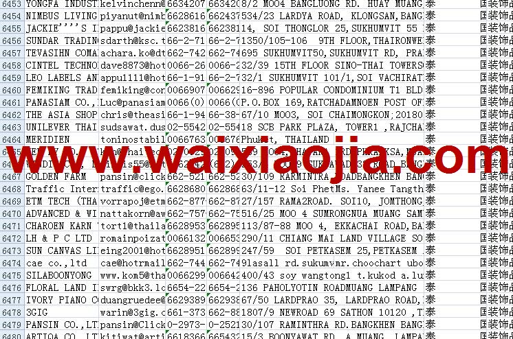 泰國(guó)采購(gòu)商名單數(shù)據(jù)為Excel格式,信息可任意修改、復(fù)制、打印、導(dǎo)出及導(dǎo)入到傳真、郵件群發(fā)等軟件中,無(wú)任何限制。