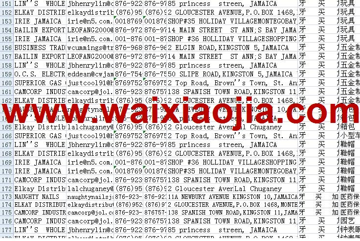 牙買加采購商名單數據為Excel格式,信息可任意修改、復制、打印、導出及導入到傳真、郵件群發等軟件中,無任何限制。