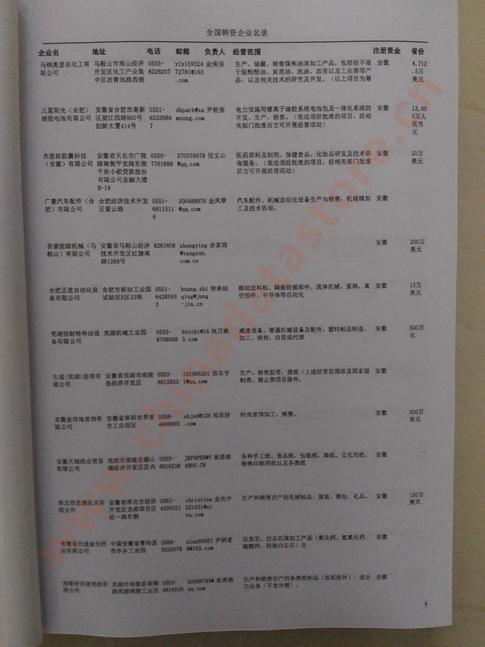 最新韓國在華企業(yè)黃頁主要收錄了韓國在中國境內(nèi)的獨(dú)資、合資、合作經(jīng)營等類型的企業(yè)通信黃頁,韓國外商投資企業(yè)黃頁內(nèi)容有:企業(yè)名稱、地址、電話、傳真、電子郵箱、經(jīng)營范圍、注冊資金等;韓資企業(yè)黃頁都是一些國際上的知名品牌企業(yè)在大陸地區(qū)設(shè)立的分公司及辦事機(jī)構(gòu),這類企業(yè)經(jīng)濟(jì)實(shí)力、技術(shù)實(shí)力與品牌效應(yīng)都比較強(qiáng),與這類企業(yè)開展合作業(yè)務(wù)是許多國內(nèi)企業(yè)夢寐以求的事情,因此在華韓資企業(yè)名單是各個國內(nèi)企業(yè)提高銷售業(yè)績必備的參考工具!