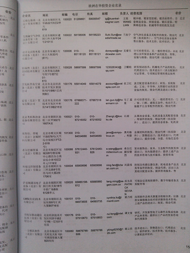 最新法國在華企業黃頁主要收錄了法國在中國境內的獨資、合資、合作經營等類型的企業通信黃頁,法國外商投資企業黃頁內容有:企業名稱、地址、電話、傳真、電子郵箱、經營范圍、注冊資金等;法國外商黃頁都是一些國際上的知名品牌企業在大陸地區設立的分公司及辦事機構,這類企業經濟實力、技術實力與品牌效應都比較強,與這類企業開展合作業務是許多國內企業夢寐以求的事情,因此在華法國企業名單是各個國內企業提高銷售業績必備的參考工具!