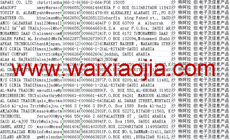 沙特采購商名單數據為Excel格式,信息可任意修改、復制、打印、導出及導入到傳真、郵件群發等軟件中,無任何限制。