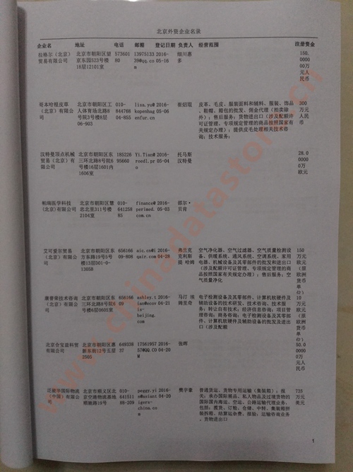 2021版最新北京企業(yè)黃頁(yè)包括《北京制造企業(yè)黃頁(yè)》、《北京貿(mào)易企業(yè)黃頁(yè)》、《北京民營(yíng)企業(yè)黃頁(yè)》、《北京外資企業(yè)黃頁(yè)》、《北京外貿(mào)企業(yè)黃頁(yè)》共五冊(cè),現(xiàn)優(yōu)惠價(jià):280元/冊(cè)。每?jī)?cè)內(nèi)容包括:?jiǎn)挝幻Q、地址、郵編、電話、傳真、郵箱、經(jīng)營(yíng)范圍等;北京企業(yè)黃頁(yè)涵蓋了近幾年來(lái)最新成立的、有一定規(guī)模的企業(yè),具有非常高的營(yíng)銷價(jià)值。有了這套黃頁(yè)開(kāi)展業(yè)務(wù)也有了針對(duì)性,也省去了盲目去尋找客戶名單而浪費(fèi)的時(shí)間了,工作效率也會(huì)有很大的提高。歡迎需要北京企業(yè)黃頁(yè)的朋友及時(shí)聯(lián)系我們!