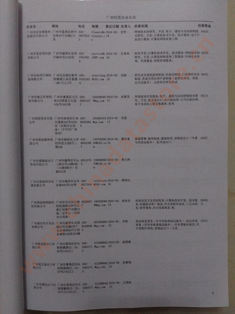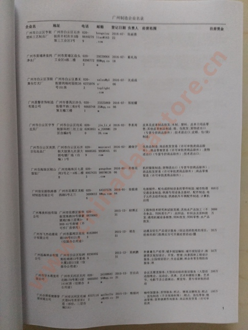 2021版最新廣州企業黃頁包括《廣州制造企業黃頁》、《廣州貿易企業黃頁》、《廣州民營企業黃頁》、《廣州外資企業黃頁》、《廣州外貿企業黃頁》共五冊,現優惠價:280元/冊。每冊內容包括:單位名稱、地址、郵編、電話、傳真、郵箱、經營范圍等;廣州企業黃頁涵蓋了近幾年來最新成立的、有一定規模的企業,具有非常高的營銷價值。有了這套黃頁開展業務也有了針對性,也省去了盲目去尋找客戶名單而浪費的時間了,工作效率也會有很大的提高。歡迎需要廣州企業黃頁的朋友及時聯系我們!