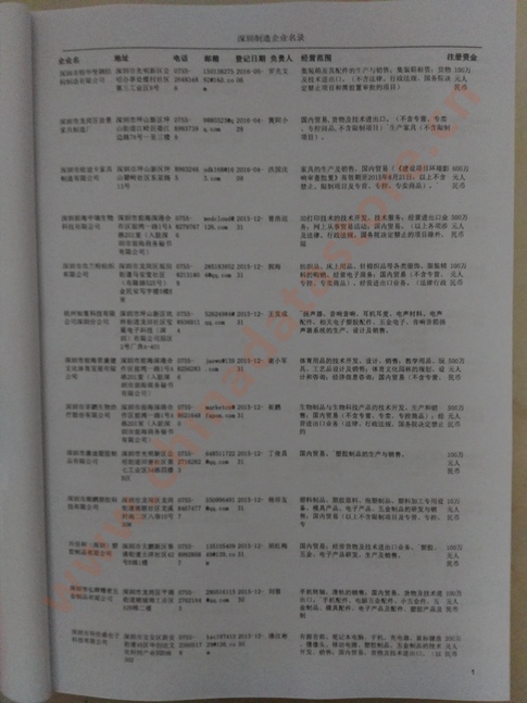 2021版最新深圳企業(yè)黃頁包括《深圳制造企業(yè)黃頁》、《深圳貿(mào)易企業(yè)黃頁》、《深圳民營企業(yè)黃頁》、《深圳外資企業(yè)黃頁》、《深圳外貿(mào)企業(yè)黃頁》共五冊,現(xiàn)優(yōu)惠價:280元/冊。每冊內(nèi)容包括:單位名稱、地址、郵編、電話、傳真、郵箱、經(jīng)營范圍等;深圳企業(yè)黃頁涵蓋了近幾年來最新成立的、有一定規(guī)模的企業(yè),具有非常高的營銷價值。有了這套黃頁開展業(yè)務(wù)也有了針對性,也省去了盲目去尋找客戶名單而浪費(fèi)的時間了,工作效率也會有很大的提高。歡迎需要深圳企業(yè)黃頁的朋友及時聯(lián)系我們!