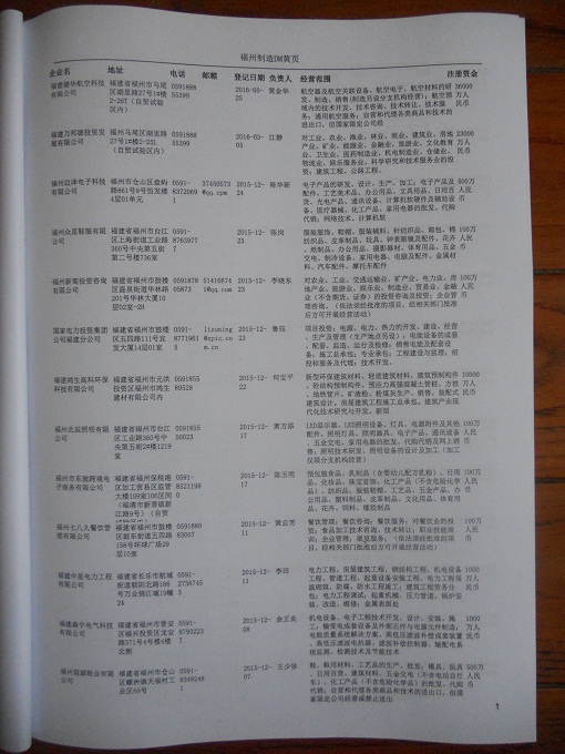 2021版最新福州企業黃頁包括《福州制造企業黃頁》、《福州貿易企業黃頁》、《福州民營企業黃頁》、《福州外資企業黃頁》、《福州外貿企業黃頁》共五冊,現優惠價:280元/冊。每冊內容包括:單位名稱、地址、郵編、電話、傳真、郵箱、經營范圍等;福州企業黃頁涵蓋了近幾年來最新成立的、有一定規模的企業,具有非常高的營銷價值。有了這套黃頁開展業務也有了針對性,也省去了盲目去尋找客戶名單而浪費的時間了,工作效率也會有很大的提高。歡迎需要福州企業黃頁的朋友及時聯系我們!