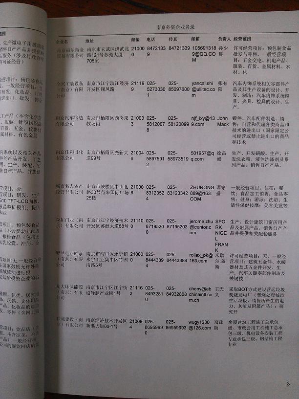 2021版最新南京企業黃頁包括《南京制造企業黃頁》、《南京貿易企業黃頁》、《南京民營企業黃頁》、《南京外資企業黃頁》、《南京外貿企業黃頁》共五冊,現優惠價:280元/冊。每冊內容包括:單位名稱、地址、郵編、電話、傳真、郵箱、經營范圍等;南京企業黃頁涵蓋了近幾年來最新成立的、有一定規模的企業,具有非常高的營銷價值。有了這套黃頁開展業務也有了針對性,也省去了盲目去尋找客戶名單而浪費的時間了,工作效率也會有很大的提高。歡迎需要南京企業黃頁的朋友及時聯系我們!