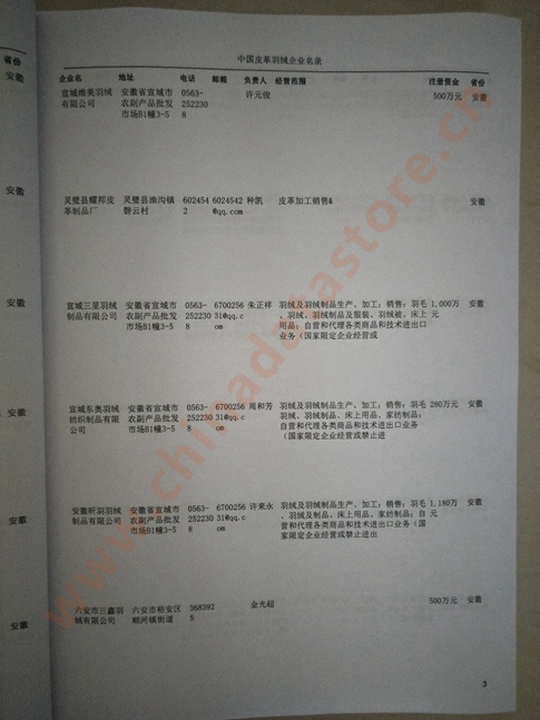 | 全國皮革毛皮羽絨企業黃頁 | 全國所有皮革毛皮羽絨企業黃頁 | 80% - 90% | 2000元 | 附贈上下兩冊皮革毛皮羽絨紙質印刷品 |