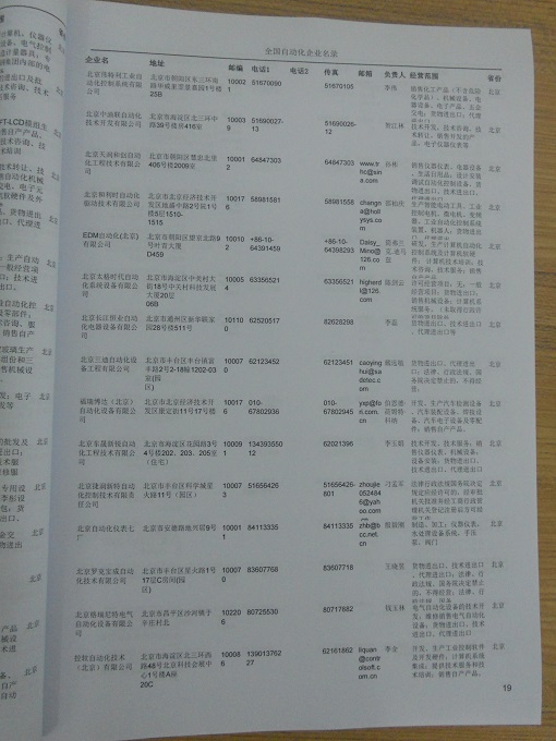 | 全國自動化企業黃頁 | 全國所有自動化企業黃頁 | 80% - 90% | 2000元 | 附贈上下冊自動化紙質印刷品 |