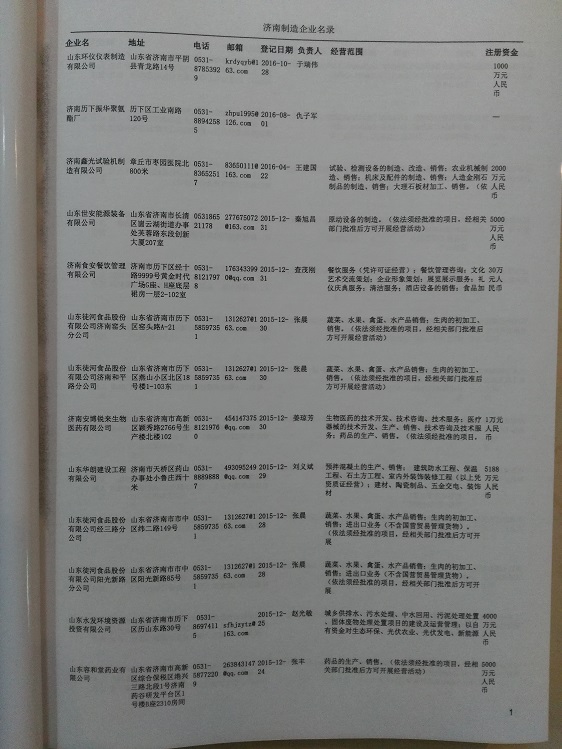 2021版最新濟南企業黃頁包括《濟南制造企業黃頁》、《濟南貿易企業黃頁》、《濟南民營企業黃頁》、《濟南外資企業黃頁》、《濟南外貿企業黃頁》共五冊,現優惠價:280元/冊。每冊內容包括:單位名稱、地址、郵編、電話、傳真、郵箱、經營范圍等;濟南企業黃頁涵蓋了近幾年來最新成立的、有一定規模的企業,具有非常高的營銷價值。有了這套黃頁開展業務也有了針對性,也省去了盲目去尋找客戶名單而浪費的時間了,工作效率也會有很大的提高。歡迎需要濟南企業黃頁的朋友及時聯系我們!