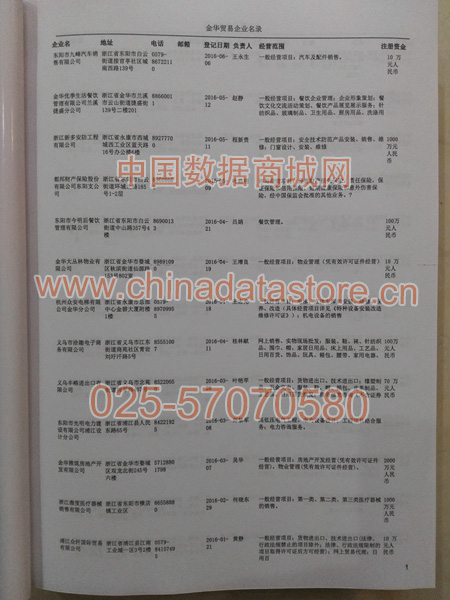 2021版最新金華企業黃頁包括《金華制造企業黃頁》、《金華貿易企業黃頁》、《金華民營企業黃頁》、《金華外資企業黃頁》、《金華外貿企業黃頁》共五冊,現優惠價:280元/冊。每冊內容包括:單位名稱、地址、郵編、電話、傳真、郵箱、經營范圍等;金華企業黃頁涵蓋了近幾年來最新成立的、有一定規模的企業,具有非常高的營銷價值。有了這套黃頁開展業務也有了針對性,也省去了盲目去尋找客戶名單而浪費的時間了,工作效率也會有很大的提高。歡迎需要金華企業黃頁的朋友及時聯系我們!