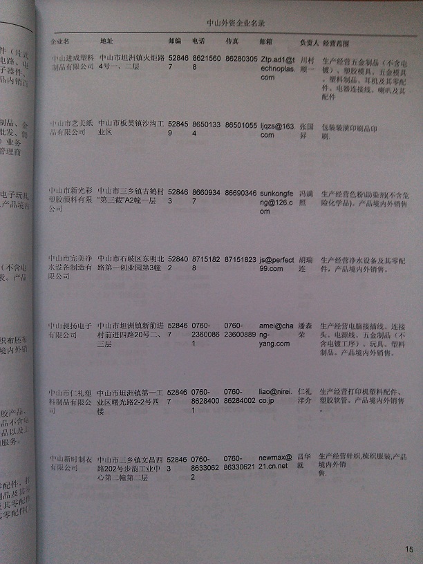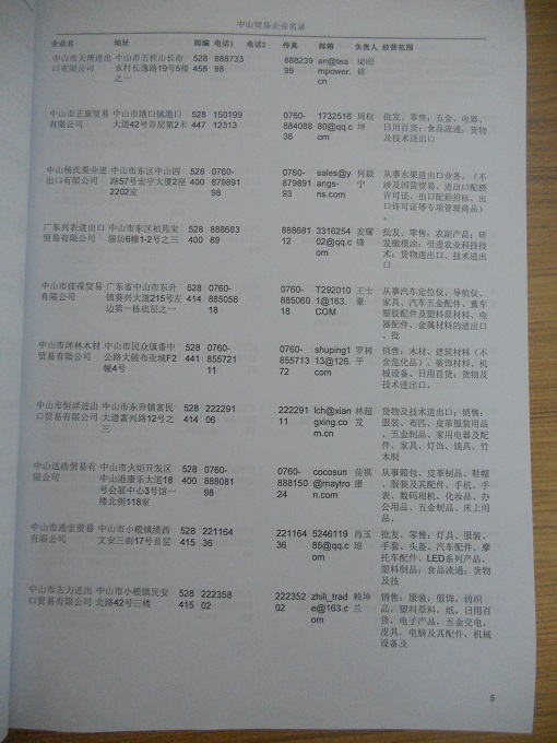 2021版最新中山企業黃頁包括《中山制造企業黃頁》、《中山貿易企業黃頁》、《中山民營企業黃頁》、《中山外資企業黃頁》、《中山外貿企業黃頁》共五冊,現優惠價:280元/冊。每冊內容包括:單位名稱、地址、郵編、電話、傳真、郵箱、經營范圍等;中山企業黃頁涵蓋了近幾年來最新成立的、有一定規模的企業,具有非常高的營銷價值。有了這套黃頁開展業務也有了針對性,也省去了盲目去尋找客戶名單而浪費的時間了,工作效率也會有很大的提高。歡迎需要中山企業黃頁的朋友及時聯系我們!