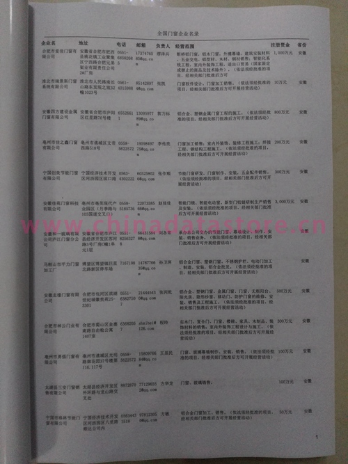 | 某省或直轄市 | 如上海、浙江門窗企業名單 | 80% - 90% | 600元 | 附贈一冊門窗紙質印刷品 |