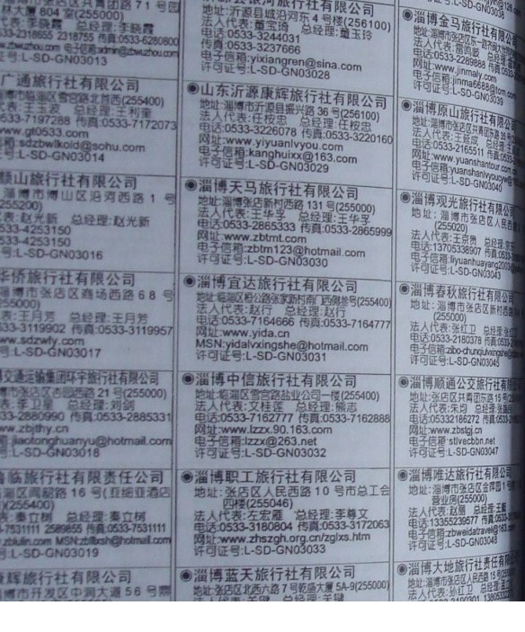 某個(gè)城市 如深圳、南京旅游企業(yè)黃頁 80% - 90% 300元