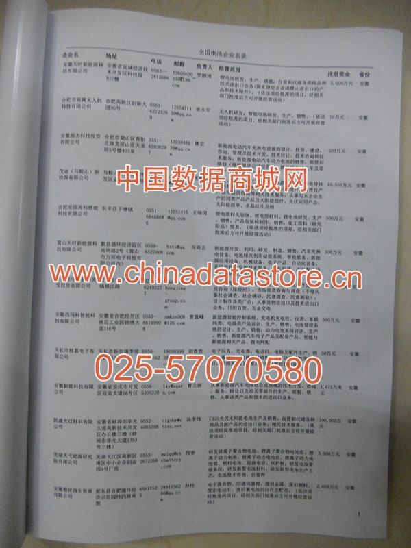 | 全國電池企業(yè)黃頁 | 全國所有電池企業(yè)黃頁 | 80% - 90% | 1000元 | 附贈上下冊電池紙質(zhì)印刷品 |