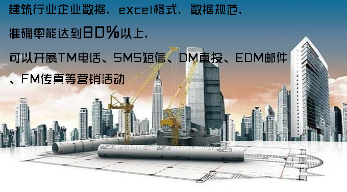 最新建筑工程生產(chǎn)與貿(mào)易企業(yè)黃頁數(shù)據(jù)更新日期2025年12月最新全國建筑工程企業(yè)名單共165000條,都是具有一定規(guī)模的建筑工程行業(yè)的注冊實體企業(yè),數(shù)據(jù)準確率高,是您開展各項營銷活動的必備資料。建筑工程企業(yè)黃頁包括:企業(yè)名稱、地址、電話、傳真、郵箱、登記日期、經(jīng)營范圍、注冊資金等信息。建筑工程企業(yè)名單數(shù)據(jù)為Excel格式,信息可任意修改、復制、打印、導出及導入到傳真、郵件群發(fā)等建筑工程中,無任何限制。
