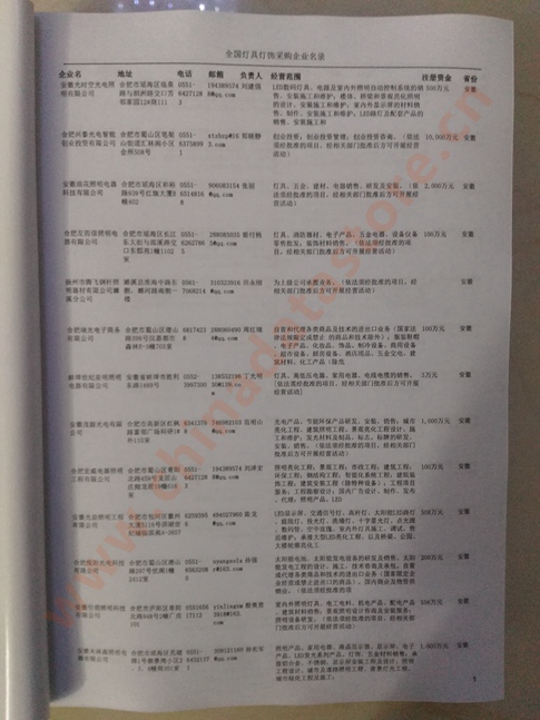 2025年新版中國燈具燈飾采購企業黃頁,收錄了全國各地經營范圍涉及燈具燈飾產品的貿易企業,這些都是頗具實力的燈具燈飾產品的中國采購商。黃頁內容包含:企業名稱、地址、電話、傳真、郵箱、經營范圍、省份、注冊資金等信息。該套黃頁包含一個黃頁光碟加一冊紙質書刊,全國價格:1500元,省/直轄市價格:400元,城市價格:200元,共收錄了全國各地大概22857(統計日期:2018.1)家燈具燈飾產品采購企業。黃頁光碟中是EXCEL格式,信息可任意修改、復制、打印、導出及導入到傳真、郵件群發等軟件中,無任何限制。