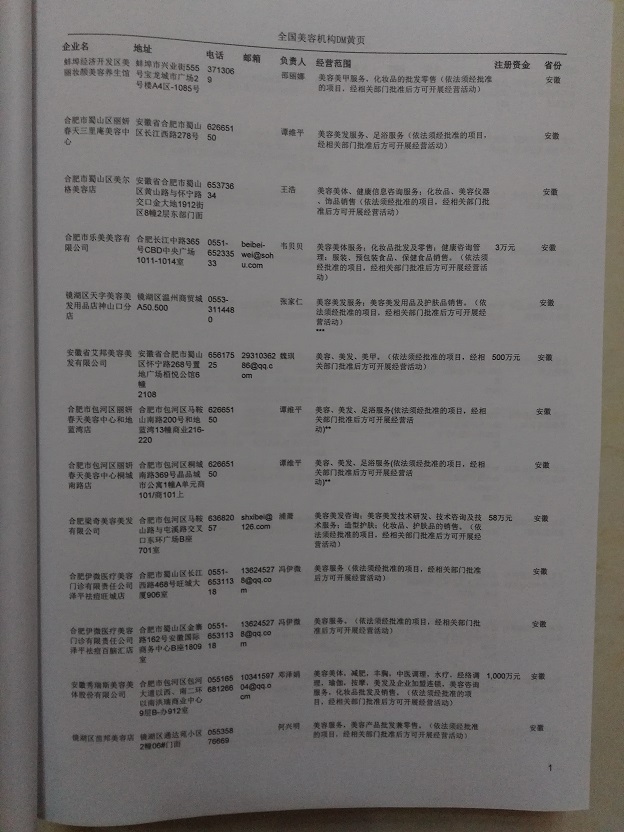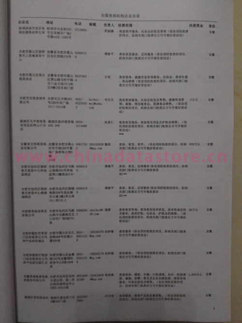 | 某省或直轄市 | 如上海、浙江美容院名單 | 80% - 90% | 600元 | 附贈一冊美容院紙質印刷品 |