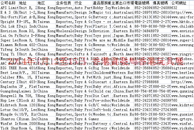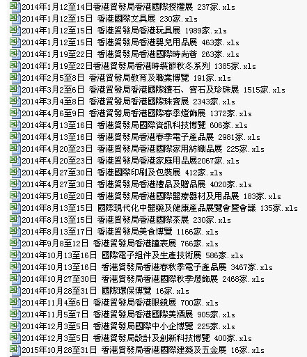 簡介:2014年香港貿發局展會會刊共收錄30個展會參展商信息。數據格式EXCEL,會刊內容包含:公司名稱、地址、地區、業務性質、行業、產品服務范圍、出口市場、電話、傳真、網址。