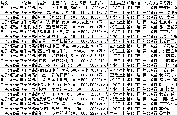 117屆廣交會參展商企業(yè)黃頁共30138條記錄(部分企業(yè)參加不止一期,實際數(shù)量2萬家左右)。售價200元,或聯(lián)系網(wǎng)站客服執(zhí)行任務(wù)免費獲取