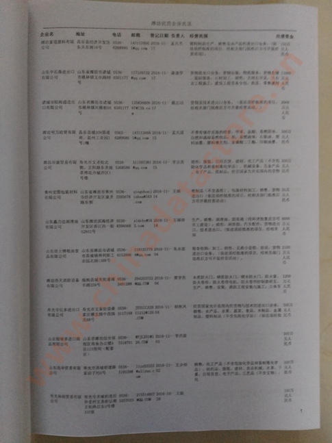 2021版最新濰坊企業黃頁包括《濰坊制造企業黃頁》、《濰坊民營企業黃頁》,現優惠價:280元/冊。每冊內容包括:單位名稱、地址、郵編、電話、傳真、郵箱、經營范圍等;濰坊企業黃頁涵蓋了近幾年來最新成立的、有一定規模的企業,具有非常高的營銷價值。有了這套黃頁開展業務也有了針對性,也省去了盲目去尋找客戶名單而浪費的時間了,工作效率也會有很大的提高。歡迎需要濰坊企業黃頁的朋友及時聯系我們!