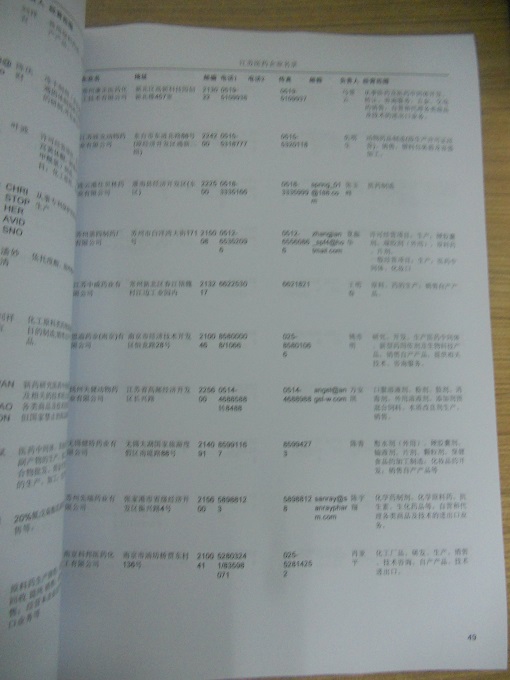 江蘇醫藥企業黃頁 所有江蘇醫藥企業黃頁 80% - 90% 600元 附贈一冊江蘇醫藥紙質印刷品