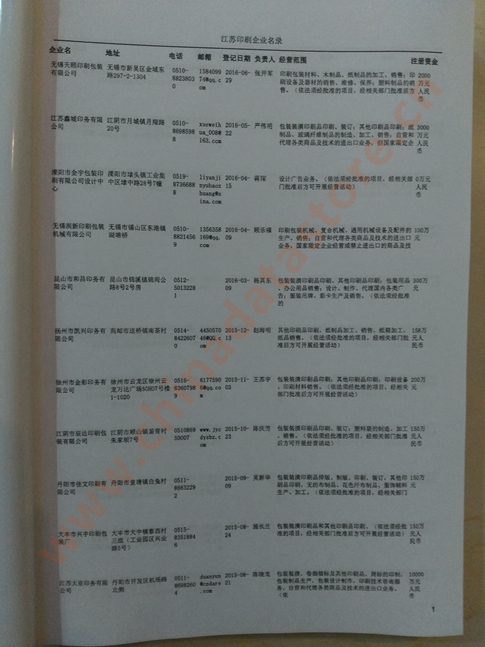 江蘇印刷企業(yè)名單助您立刻獲得大量潛在客戶信息,大大減少銷售成本,是您的事業(yè)事半功倍