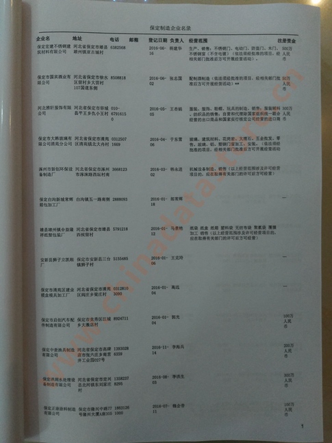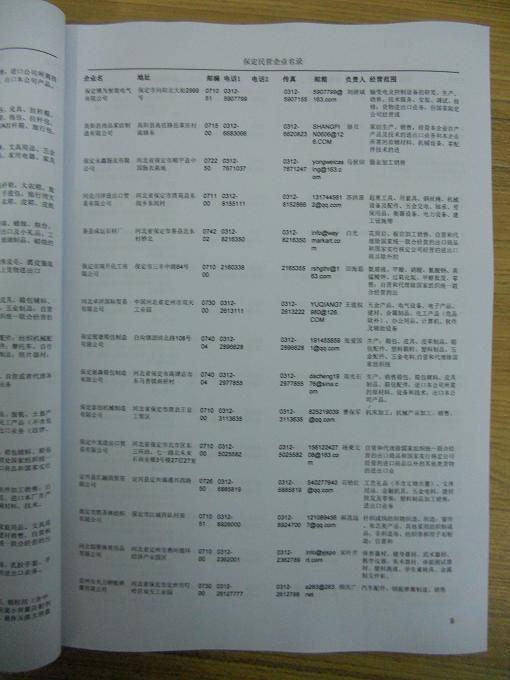 2021版最新保定企業黃頁包括《保定制造企業黃頁》、《保定民營企業黃頁》,現優惠價:280元/冊。每冊內容包括:單位名稱、地址、郵編、電話、傳真、郵箱、經營范圍等;保定企業黃頁涵蓋了近幾年來最新成立的、有一定規模的企業,具有非常高的營銷價值。有了這套黃頁開展業務也有了針對性,也省去了盲目去尋找客戶名單而浪費的時間了,工作效率也會有很大的提高。歡迎需要保定企業黃頁的朋友及時聯系我們!
