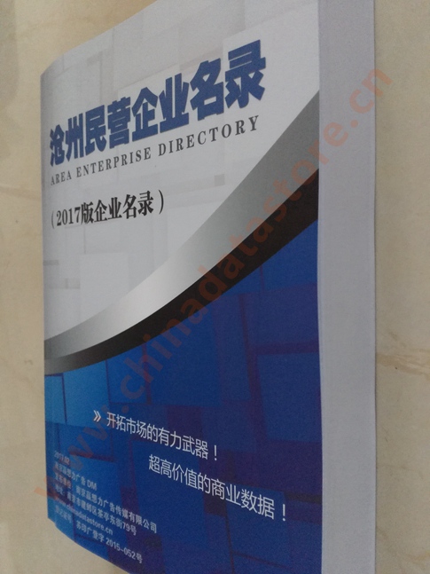 2021版最新滄州企業黃頁包括《滄州制造企業黃頁》、《滄州民營企業黃頁》,現優惠價:280元/冊。每冊內容包括:單位名稱、地址、郵編、電話、傳真、郵箱、經營范圍等;滄州企業黃頁涵蓋了近幾年來最新成立的、有一定規模的企業,具有非常高的營銷價值。有了這套黃頁開展業務也有了針對性,也省去了盲目去尋找客戶名單而浪費的時間了,工作效率也會有很大的提高。歡迎需要滄州企業黃頁的朋友及時聯系我們!