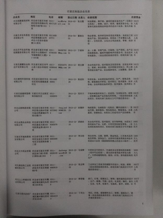 2021版最新石家莊企業黃頁包括《石家莊制造企業黃頁》、《石家莊民營企業黃頁》,現優惠價:280元/冊。每冊內容包括:單位名稱、地址、郵編、電話、傳真、郵箱、經營范圍等;石家莊企業黃頁涵蓋了近幾年來最新成立的、有一定規模的企業,具有非常高的營銷價值。有了這套黃頁開展業務也有了針對性,也省去了盲目去尋找客戶名單而浪費的時間了,工作效率也會有很大的提高。歡迎需要石家莊企業黃頁的朋友及時聯系我們!