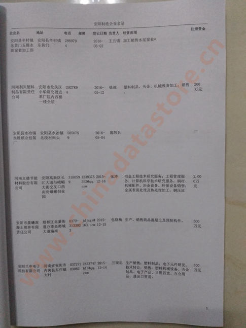 2021版最新安陽企業黃頁包括《安陽制造企業黃頁》、《安陽民營企業黃頁》,現優惠價:280元/冊。每冊內容包括:單位名稱、地址、郵編、電話、傳真、郵箱、經營范圍等;安陽企業黃頁涵蓋了近幾年來最新成立的、有一定規模的企業,具有非常高的營銷價值。有了這套黃頁開展業務也有了針對性,也省去了盲目去尋找客戶名單而浪費的時間了,工作效率也會有很大的提高。歡迎需要安陽企業黃頁的朋友及時聯系我們!
