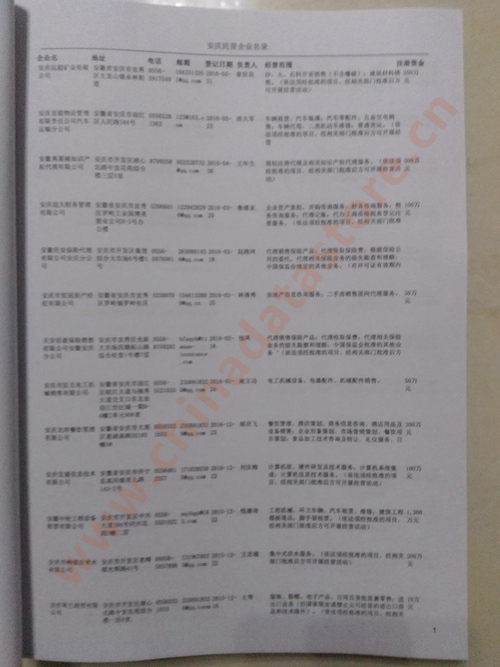 2021版最新安慶企業黃頁包括《安慶制造企業黃頁》、《安慶民營企業黃頁》,現優惠價:280元/冊。每冊內容包括:單位名稱、地址、郵編、電話、傳真、郵箱、經營范圍等;安慶企業黃頁涵蓋了近幾年來最新成立的、有一定規模的企業,具有非常高的營銷價值。有了這套黃頁開展業務也有了針對性,也省去了盲目去尋找客戶名單而浪費的時間了,工作效率也會有很大的提高。歡迎需要安慶企業黃頁的朋友及時聯系我們!