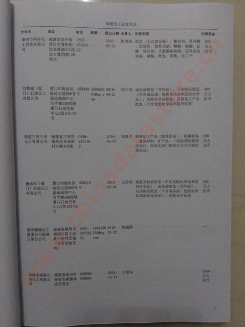 | 福建化工企業黃頁 | 所有福建化工企業黃頁 | 80% - 90% | 600元 | 附贈一冊福建化工紙質印刷品 |