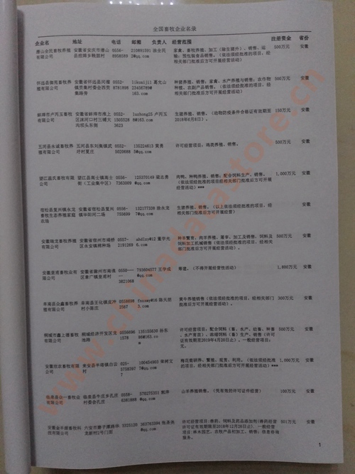 某省或直轄市 如上海、浙江畜牧企業(yè)名單  80% - 90% 600元 附贈一冊畜牧紙質(zhì)印刷品