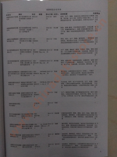 2021版最新成都企業黃頁包括《成都制造企業黃頁》、《成都民營企業黃頁》,現優惠價:280元/冊。每冊內容包括:單位名稱、地址、郵編、電話、傳真、郵箱、經營范圍等;成都企業黃頁涵蓋了近幾年來最新成立的、有一定規模的企業,具有非常高的營銷價值。有了這套黃頁開展業務也有了針對性,也省去了盲目去尋找客戶名單而浪費的時間了,工作效率也會有很大的提高。歡迎需要成都企業黃頁的朋友及時聯系我們!