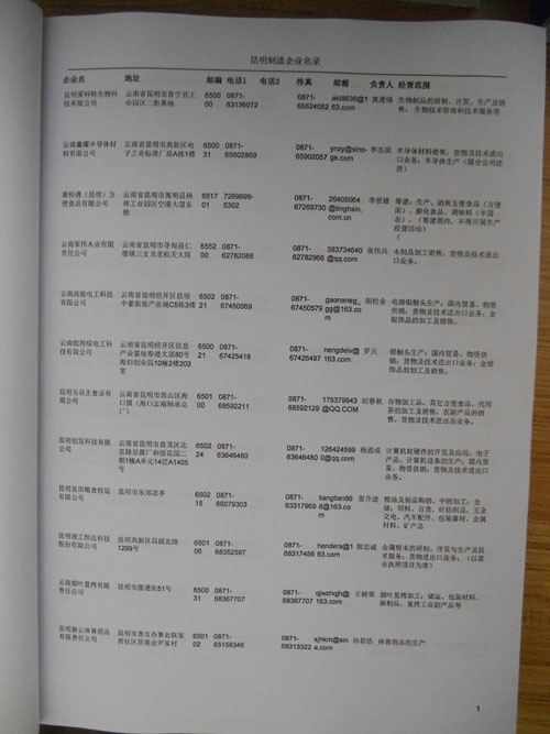 2021版最新昆明企業黃頁包括《昆明制造企業黃頁》、《昆明民營企業黃頁》,現優惠價:280元/冊。每冊內容包括:單位名稱、地址、郵編、電話、傳真、郵箱、經營范圍等;昆明企業黃頁涵蓋了近幾年來最新成立的、有一定規模的企業,具有非常高的營銷價值。有了這套黃頁開展業務也有了針對性,也省去了盲目去尋找客戶名單而浪費的時間了,工作效率也會有很大的提高。歡迎需要昆明企業黃頁的朋友及時聯系我們!