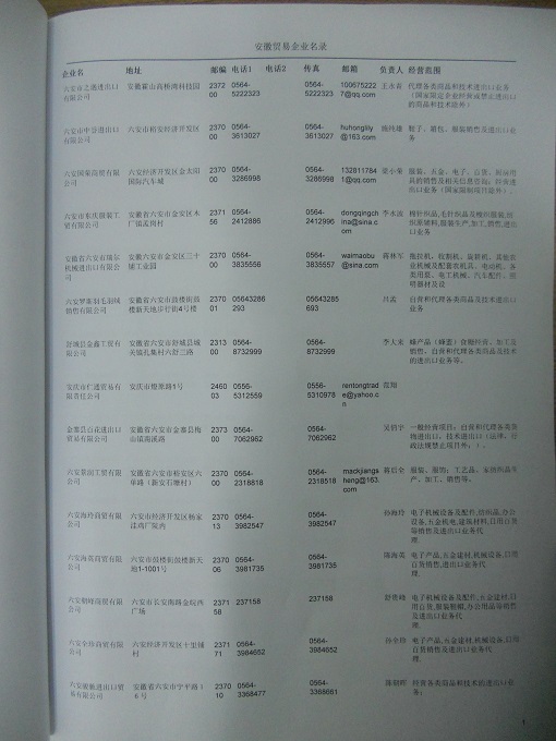 2021版最新安徽企業黃頁包括《安徽制造企業黃頁》、《安徽貿易企業黃頁》、《安徽民營企業黃頁》共三冊,優惠價:280元/冊。每冊內容包括:單位名稱、地址、郵編、電話、傳真、郵箱、經營范圍等;安徽企業黃頁涵蓋了近幾年來最新成立的、有一定規模的企業,具有非常高的營銷價值。有了這套黃頁開展業務也有了針對性,也省去了盲目去尋找客戶名單而浪費的時間了,工作效率也會有很大的提高。歡迎需要安徽企業黃頁的朋友及時聯系我們!