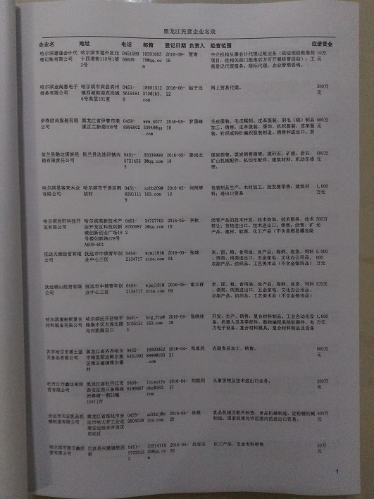 2021版最新黑龍江企業(yè)黃頁包括《黑龍江制造企業(yè)黃頁》、《黑龍江貿(mào)易企業(yè)黃頁》、《黑龍江民營企業(yè)黃頁》共三冊,優(yōu)惠價:280元/冊。每冊內(nèi)容包括:單位名稱、地址、郵編、電話、傳真、郵箱、經(jīng)營范圍等;黑龍江企業(yè)黃頁涵蓋了近幾年來最新成立的、有一定規(guī)模的企業(yè),具有非常高的營銷價值。有了這套黃頁開展業(yè)務(wù)也有了針對性,也省去了盲目去尋找客戶名單而浪費的時間了,工作效率也會有很大的提高。歡迎需要黑龍江企業(yè)黃頁的朋友及時聯(lián)系我們!