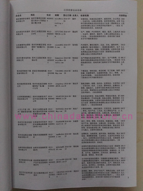 2021版最新江蘇企業(yè)黃頁(yè)包括《江蘇制造企業(yè)黃頁(yè)》、《江蘇貿(mào)易企業(yè)黃頁(yè)》、《江蘇民營(yíng)企業(yè)黃頁(yè)》共三冊(cè),優(yōu)惠價(jià):280元/冊(cè)。每?jī)?cè)內(nèi)容包括:?jiǎn)挝幻Q、地址、郵編、電話、傳真、郵箱、經(jīng)營(yíng)范圍等;江蘇企業(yè)黃頁(yè)涵蓋了近幾年來(lái)最新成立的、有一定規(guī)模的企業(yè),具有非常高的營(yíng)銷價(jià)值。有了這套黃頁(yè)開展業(yè)務(wù)也有了針對(duì)性,也省去了盲目去尋找客戶名單而浪費(fèi)的時(shí)間了,工作效率也會(huì)有很大的提高。歡迎需要江蘇企業(yè)黃頁(yè)的朋友及時(shí)聯(lián)系我們!
