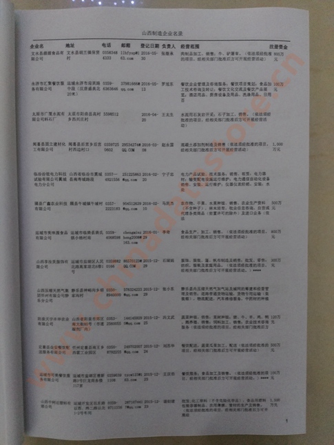 2021版最新山西企業(yè)黃頁包括《山西制造企業(yè)黃頁》、《山西貿易企業(yè)黃頁》、《山西民營企業(yè)黃頁》共三冊,優(yōu)惠價:280元/冊。每冊內容包括:單位名稱、地址、郵編、電話、傳真、郵箱、經營范圍等;山西企業(yè)黃頁涵蓋了近幾年來最新成立的、有一定規(guī)模的企業(yè),具有非常高的營銷價值。有了這套黃頁開展業(yè)務也有了針對性,也省去了盲目去尋找客戶名單而浪費的時間了,工作效率也會有很大的提高。歡迎需要山西企業(yè)黃頁的朋友及時聯(lián)系我們!