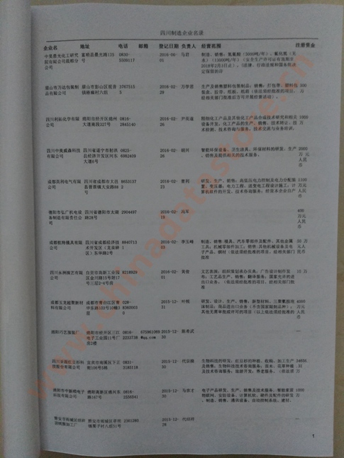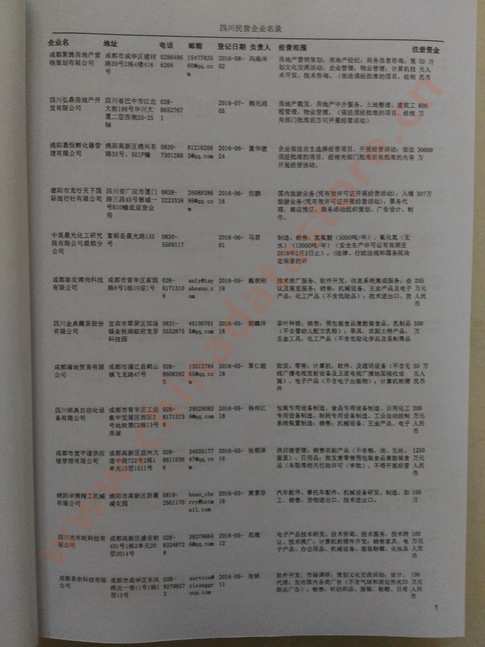 2021版最新四川企業黃頁包括《四川制造企業黃頁》、《四川貿易企業黃頁》、《四川民營企業黃頁》共三冊,優惠價:280元/冊。每冊內容包括:單位名稱、地址、郵編、電話、傳真、郵箱、經營范圍等;四川企業黃頁涵蓋了近幾年來最新成立的、有一定規模的企業,具有非常高的營銷價值。有了這套黃頁開展業務也有了針對性,也省去了盲目去尋找客戶名單而浪費的時間了,工作效率也會有很大的提高。歡迎需要四川企業黃頁的朋友及時聯系我們!