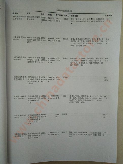 | 安徽服裝企業黃頁 | 所有安徽服裝企業黃頁 | 80% - 90% | 600元 | 附贈一冊安徽服裝紙質印刷品 |