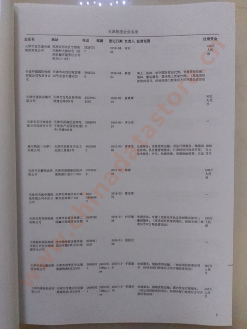 最新天津物流生產與貿易企業黃頁數據更新日期2025年12月最新,天津物流企業黃頁,都是具有一定規模的天津物流行業的注冊實體企業,數據準確率高,是您開展各項營銷活動的必備資料。企業名單包括:企業名稱、地址、電話(以上必有,以下選有)、傳真、郵箱、登記日期、經營范圍、注冊資金等信息。天津物流企業黃頁數據為Excel格式,信息可任意修改、復制、打印、導出及導入到傳真、郵件群發等軟件中,無任何限制。