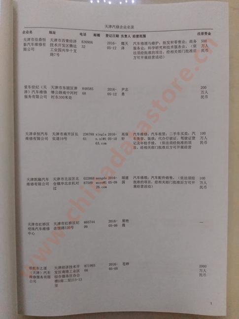 | 天津汽車維修企業黃頁 | 所有天津汽車維修企業黃頁 | 80% - 90% | 600元 | 附贈一冊天津汽車維修紙質印刷品 |
