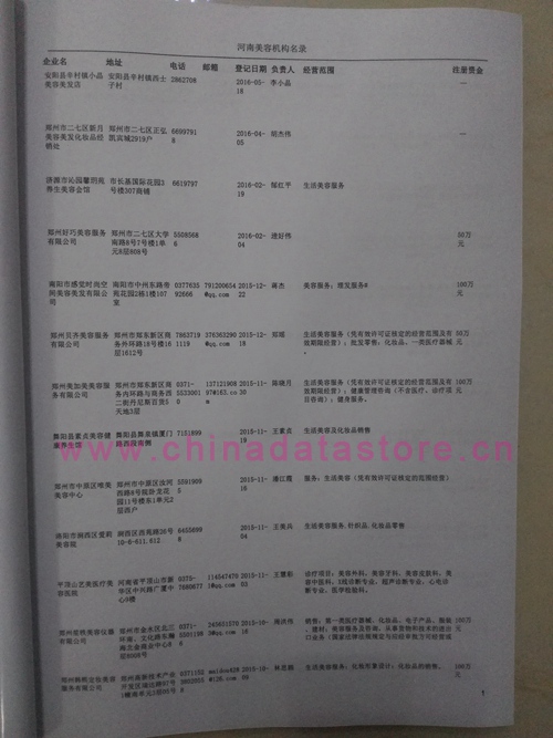 | 河南美容機構黃頁 | 所有河南美容機構黃頁 | 80% - 90% | 600元 | 附贈一冊河南美容機構紙質印刷品 |